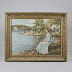 Tycho Ödberg (1865-1943), Sweden. Kvinna vid stran..//