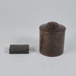 + snusdosa, 2 delar, Bakelit / trä. Längd: 8 cm, d..//