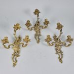 3 st, rokokostil, mässing. Höjd: 35 ca