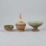 + kruka med fat, China, ceramics. Height: 14-19 cm,
