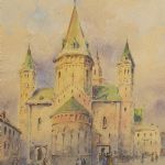 Oidentifierad konstnär. Signerad, Katedral, 46x32 cm