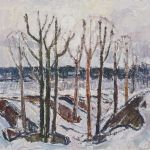 Oidentifierad konstnär. Vårflod i Gysinge. Ej sign..//