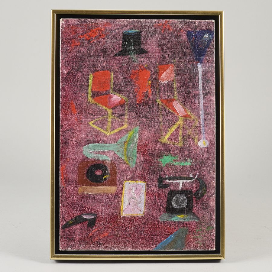 Madeleine Pyk (b. 1934), Sweden. Signed, "Antikvitetshandeln". Oil on canvas, 34, 5x23 cm, outer dimensions including frame: 37x25, 5,