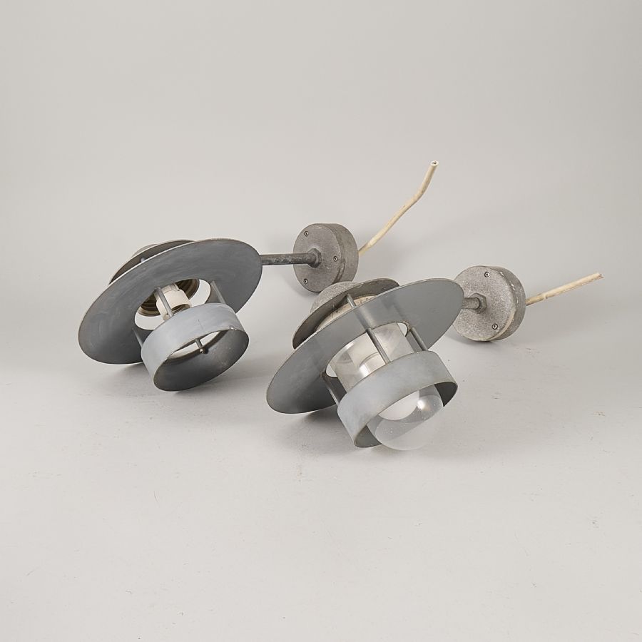 Ett par, Jens Møller-Jensen, Louis Poulsen, "Albertslund", för utomhusbruk, aluminium. Höjd: 25 cm ca. Djup: 50 cm