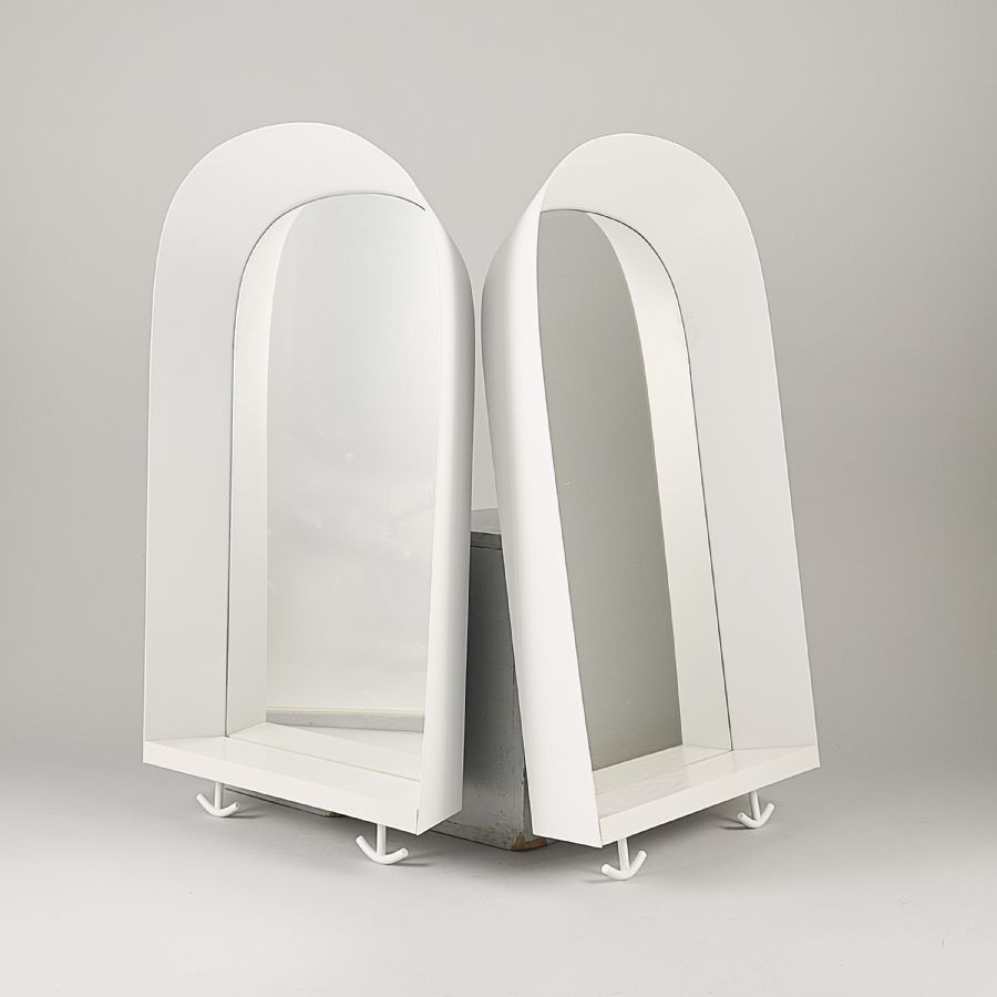 Ett par, Nofred "Portal", med hängare, metall / trä. Längd: 35 cm, djup: 9 cm, höjd: 62 cm