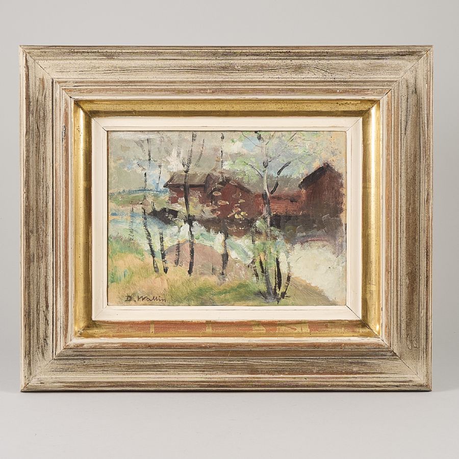 Liknande föremål: david wallin gårdsmotiv olja olja på pannå oljemålning oljemålningar svensk konst svensk konstnär svenska konstnärer sverige
