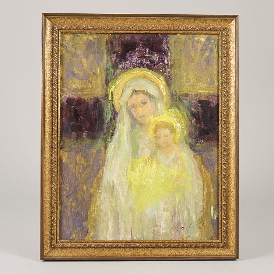 Signe (Si) Grönberger (1881-1969), Sverige, Madonna & Barnet, monogramsignerad. Olja på pannå, 33x27 cm, yttermått inklusive ram: 41x33 cm