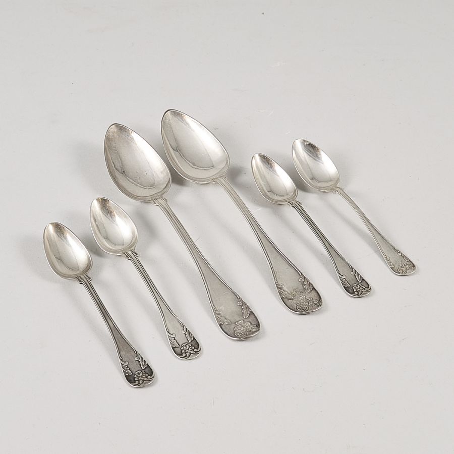 + teskedar, 6 delar, silver, Franska liljan. Längd: 14-21,5, vikt: 180g ca