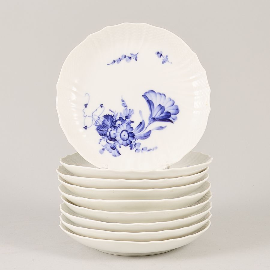 9 pcs, Royal Copenhagen, Denmark, "Blå Blomst". Diameter: 19 cm,