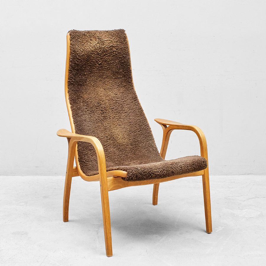 Liknande föremål: etikettmärkt swedese fårskinn i brunt fåtölj karmstol karmstolar lamino stol stolar svensk design svensk formgivare svenska formgivare sverige swedese yngve ekström