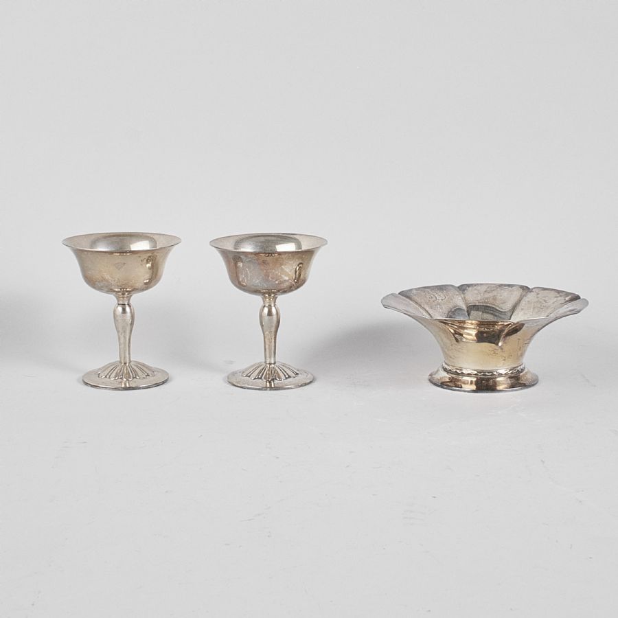 + två bägare, 3 delar, silver. Diameter: 8-15. Höjd: 5-10 cm, vitk: 260 g