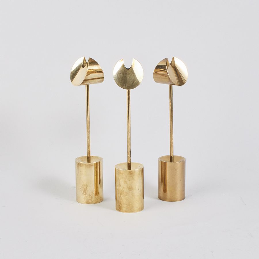 3 pcs, brass, Skultuna, Pierre Forsell (1925-2004), Sweden. Height: 22 cm,