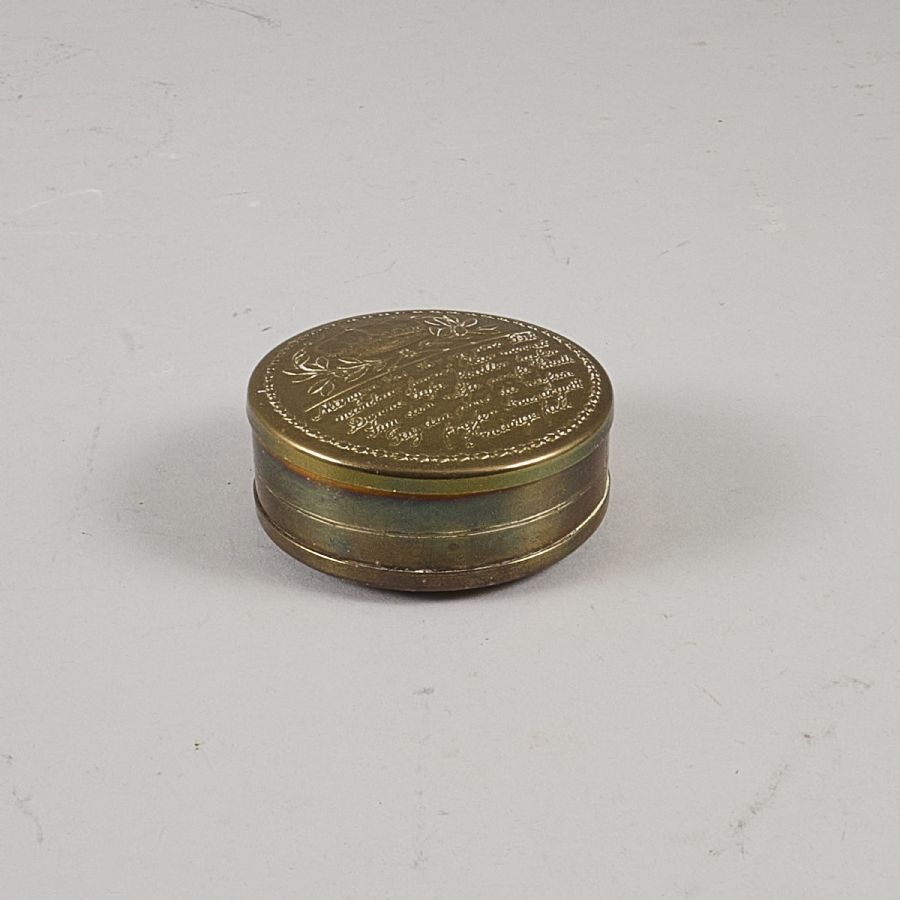 Skultuna, mässing. Diameter: 7,5 cm, höjd: 3 cm