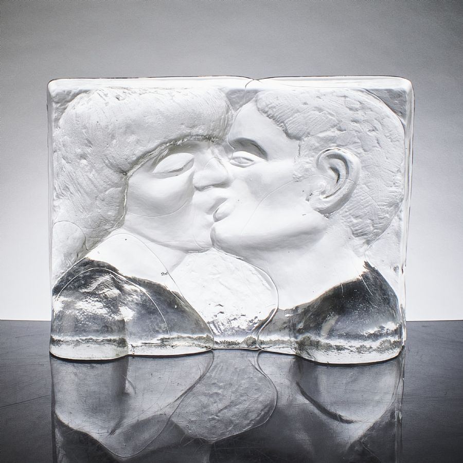 SCULPTURE, Glas, Signerad, numrerad 5/100, daterad 1980, Kyssande par, 31x42 cm