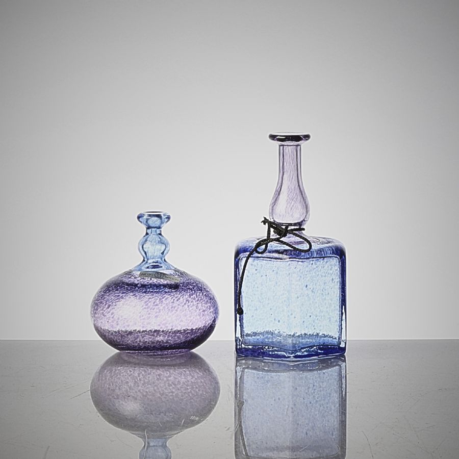Konstglas, 2 flaskor, Boda, Artist Colllection, Signerade. Höjd: 10-16 cm