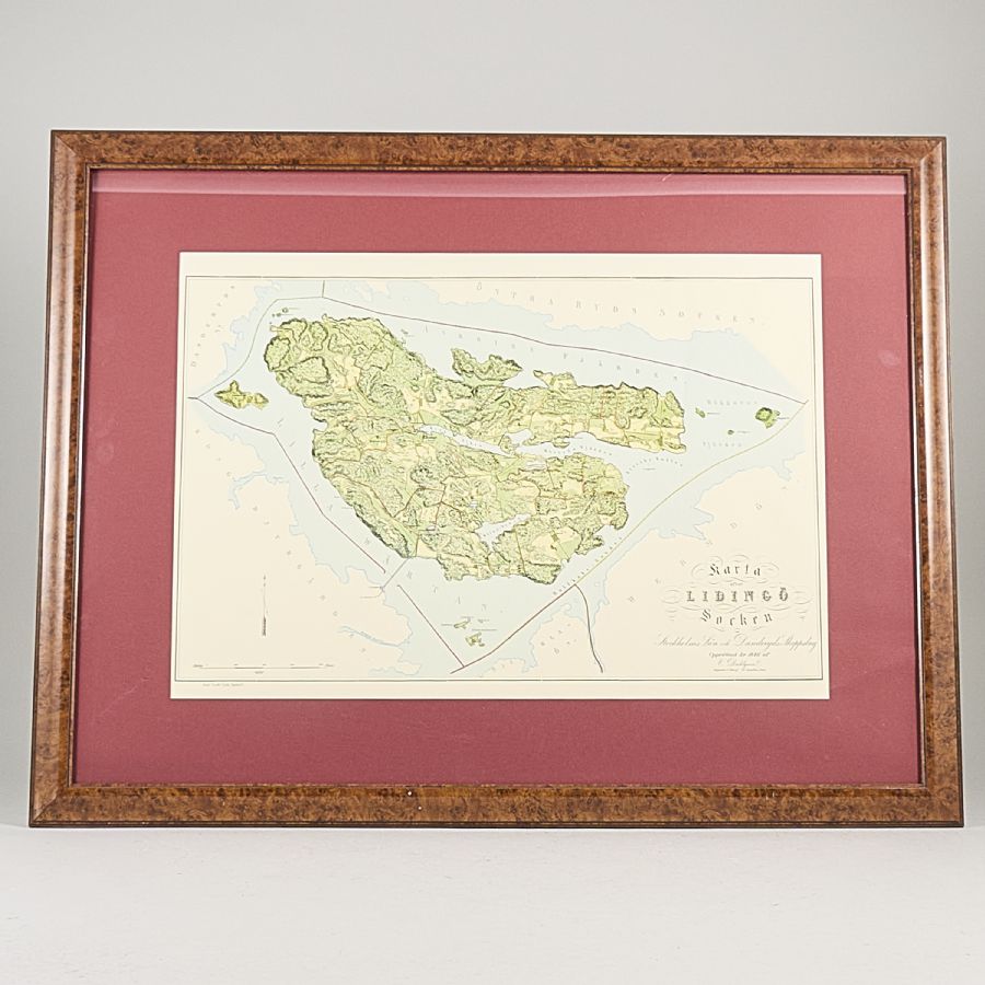 Öfver Lidingö Socken, yttermått inklusive ram: 67x87 cm