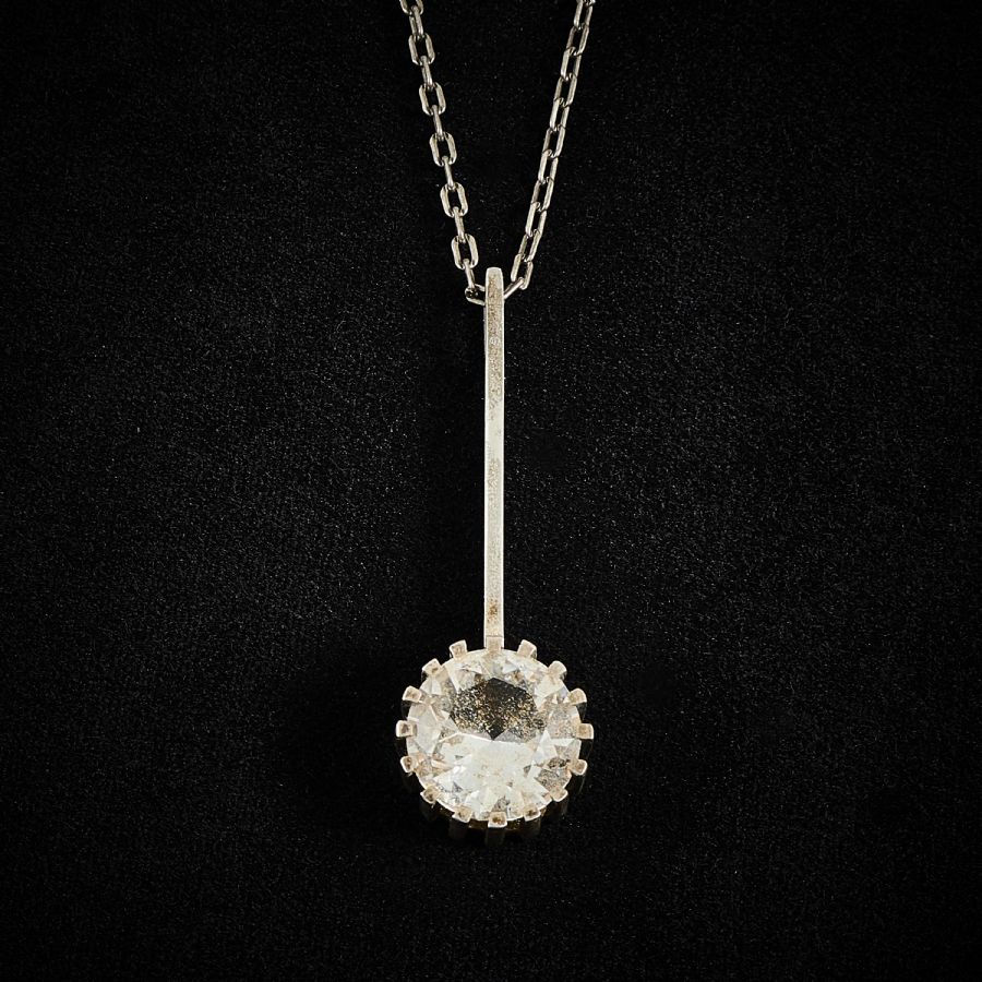 med hänge, silver och bergkristall, Bengt Hallberg, signerat. Längd: 50 cm, vikt: 15 g