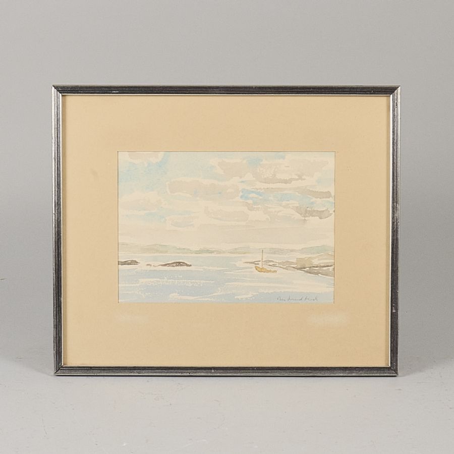Marianne Lundblad (b. 1930), Sweden, archipelago. Watercolour, Image dimensions: 16x23 cm, outer dimensions including frame: 31x36,