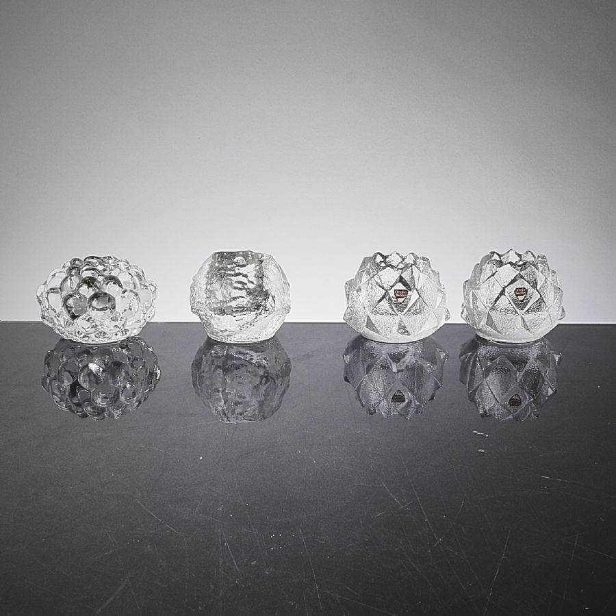 4 st, Kosta Boda & Orrefors, snöboll, kotte och hallon, glas. Höjd: 8 cm