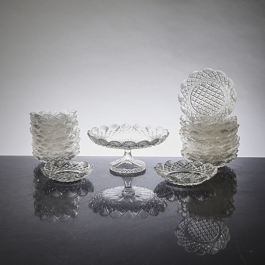 + kakfat, 12 + 12 + 1 delar, Kristall, Slipad. Diameter: 13-15,5-22 cm