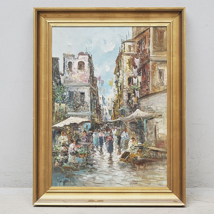 unidentified artist, Sydländskt gatumotiv. Signed. Oil on canvas, 68x49 cm, outer dimensions including frame: 85x64,