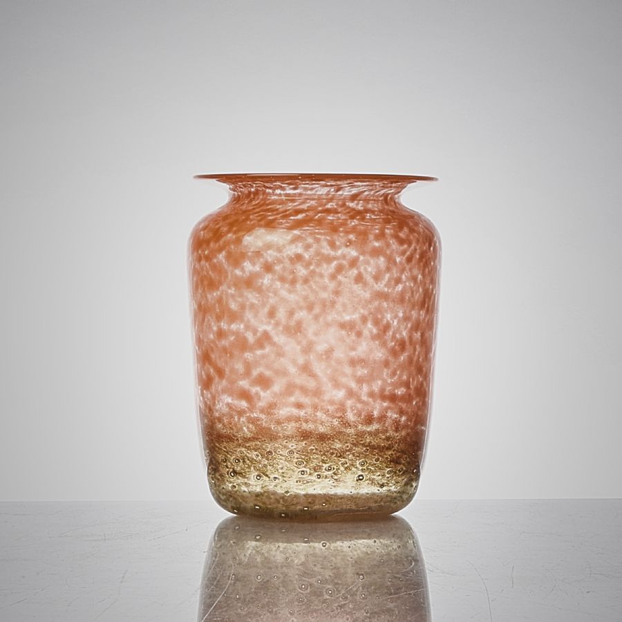 John Orwar Lake, Ekenäs Glasbruk, orange med luftbubblor. Diameter: 16 cm, höjd: 22 cm