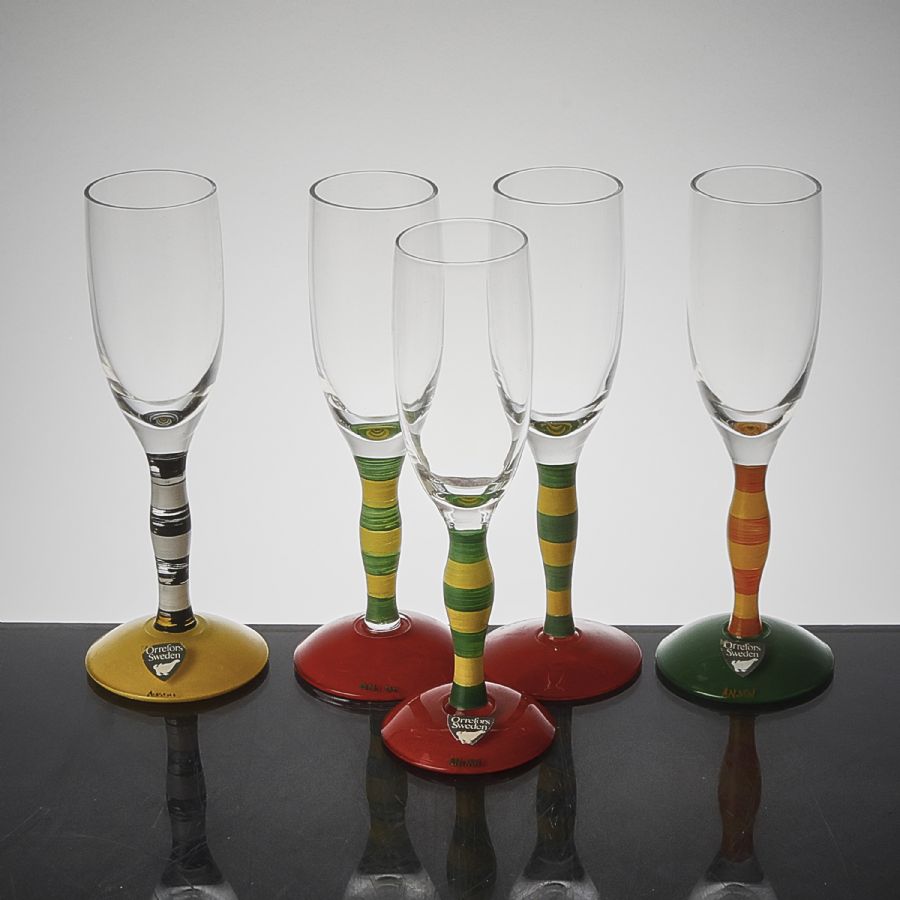 5 pcs, Orrefors Glassworks, Sweden, Anne Nilsson (b. 1953), Sweden. Polka. Height: 14 cm,