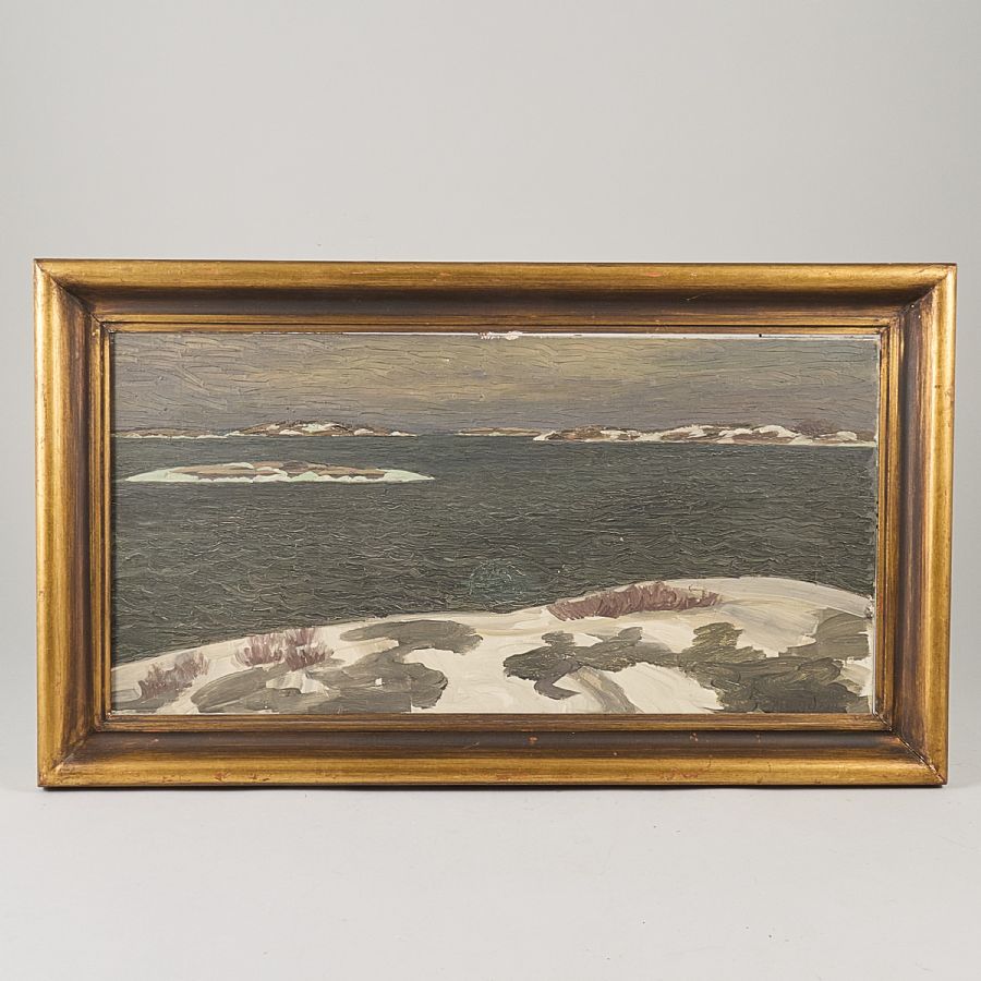 Nils Tydén (1889-1976), Sverige. Signerad, Kustlandskap. Olja på duk, 30x60 cm, yttermått inklusive ram: 40x70 cm