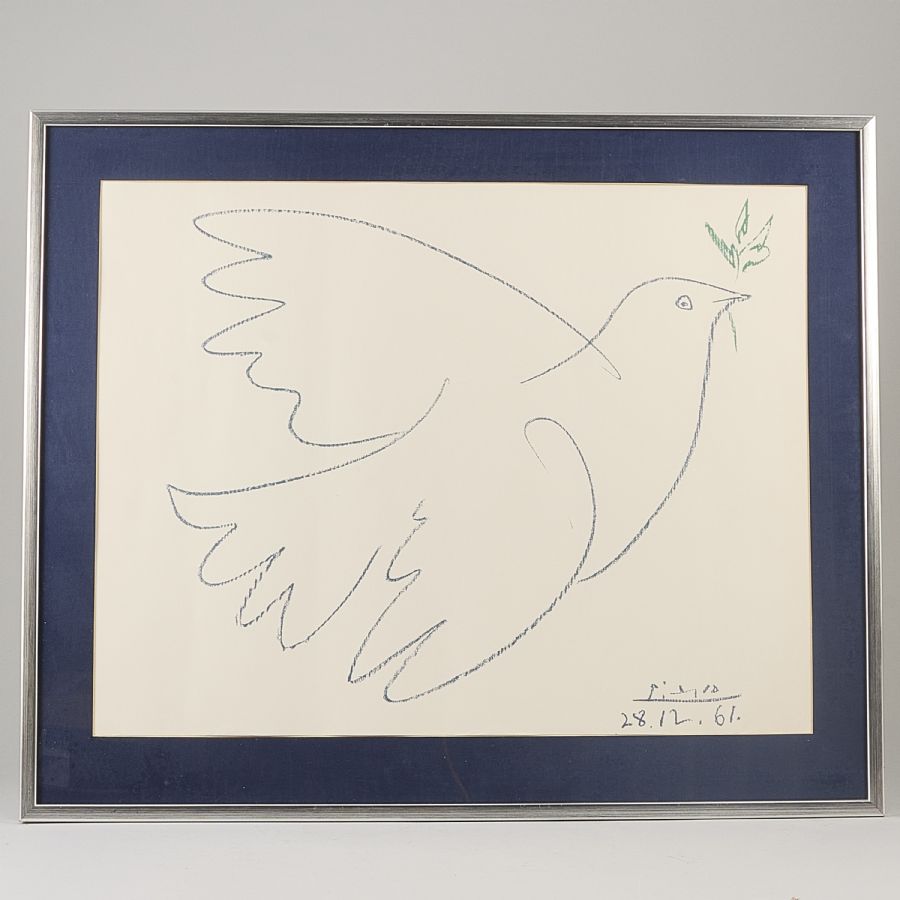 efter Pablo Picasso, fredsduva, 49x63 cm, yttermått inklusive ram: 63x76 cm