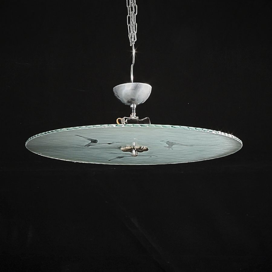 råglas, Tidigt 1900-tal, dekor med hindar, diameter: 55 cm