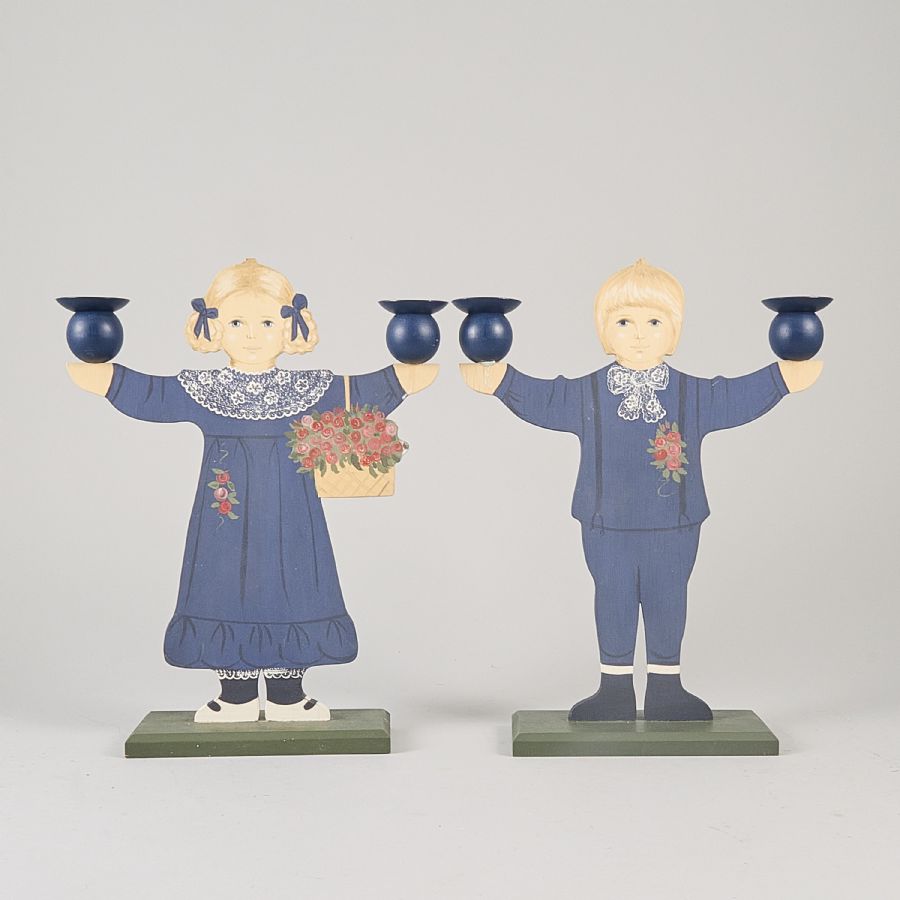 one pair. Birgitta Hedlund, bemålande pojke och flicka, två ljusarmar. Signed. Height: 36 cm,