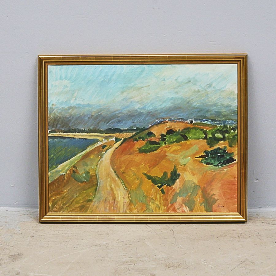 Oljemålning, Signerad, "vägen vid havet Öland". Olja på duk, bildmått: 62x78 cm, yttermått inklusive ram: 70x87 cm