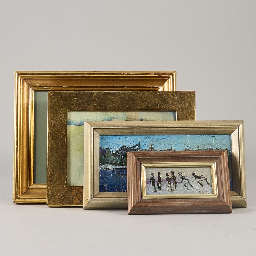 Oljemålningar/akvarell, 4 st, Erik Viktorson (f. 1912), Sverige, Signerad, yttermått inklusive ram: 11x18-24x30