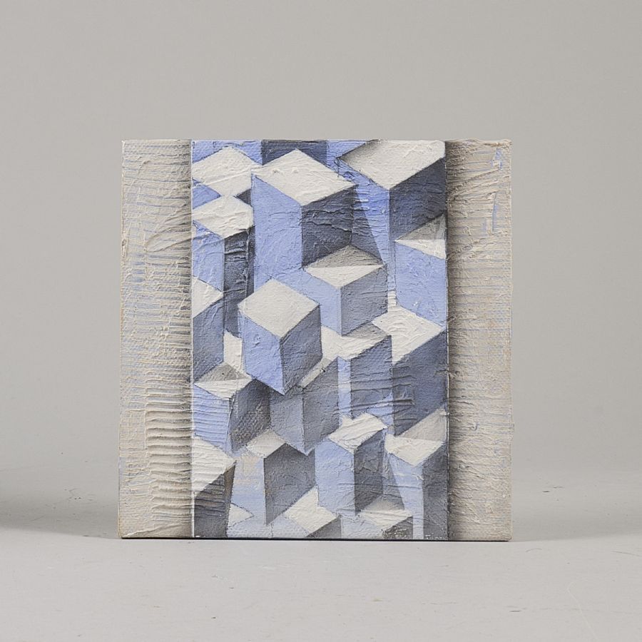 Oljemålning, Signerad, daterad 2003, "Klossar". Olja på duk, 15x15, oramad