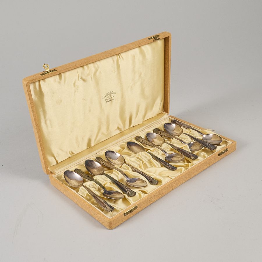 silver, 11 st, GAB Guldsmedsaktiebolaget, 1951, med monogram, "Juanita". Längd: 12 st, vikt: 140 g