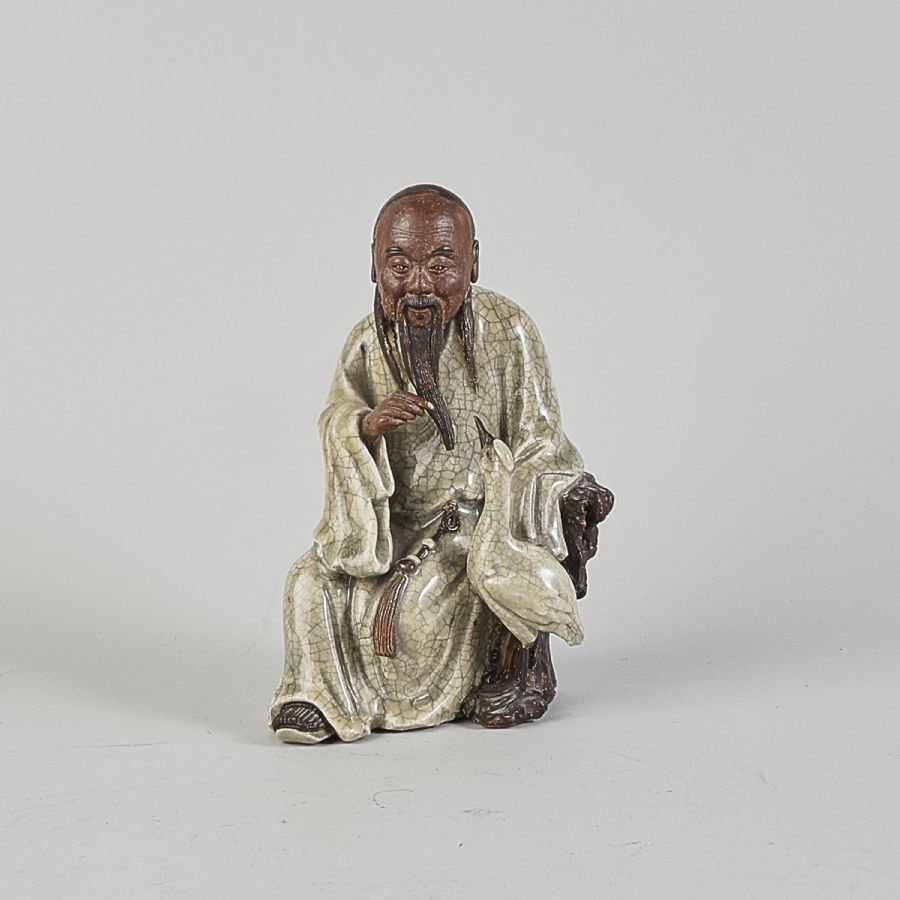 Liknande föremål: asiatisk asien glaserad stengodslera kina kinesisk kinesiskt konsthantverk man med fågel skulptur