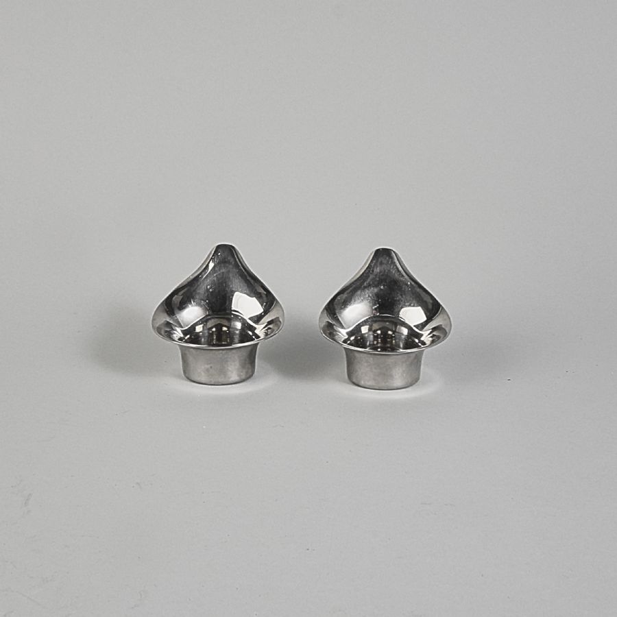 one pair, Todd Bracher, Georg Jensen, Denmark, "Lilia", stainless steel. Diameter: 7, 5 cm, height: 6 cm,