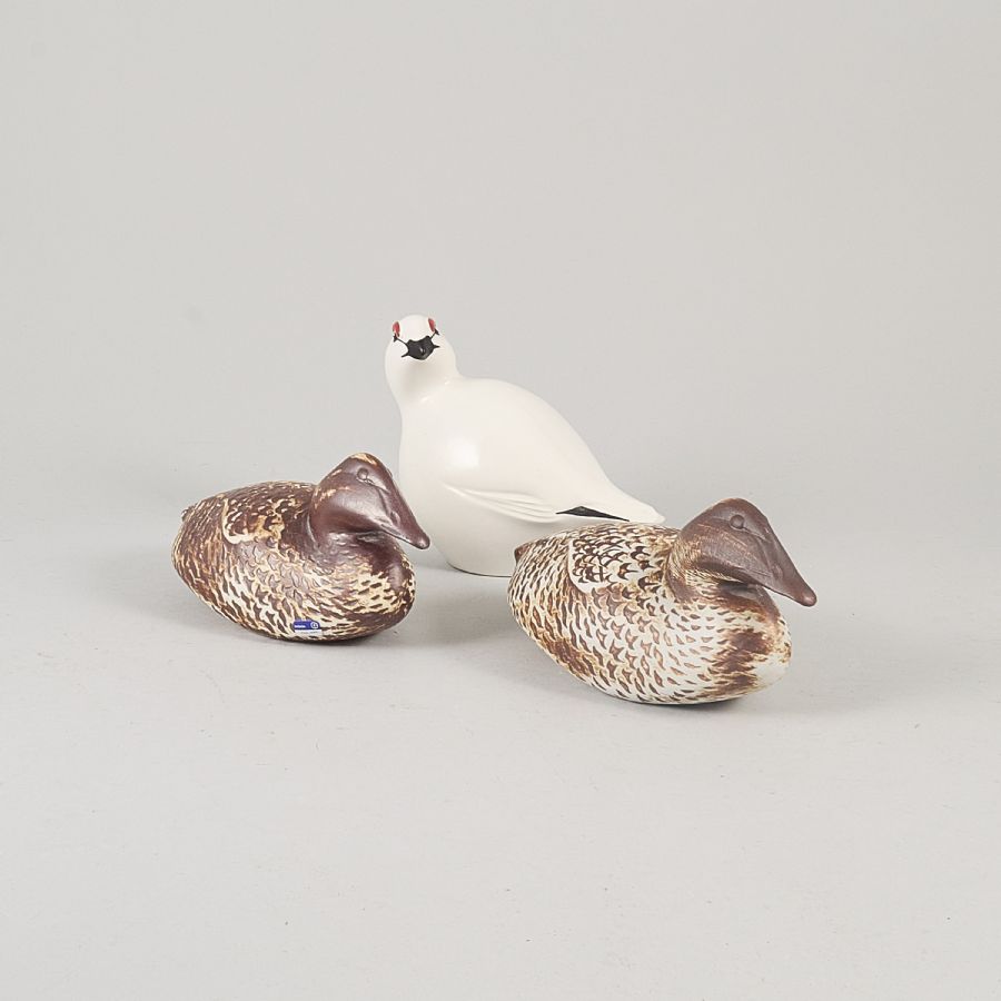 3 pcs, Paul Hoff (b. 1945), Sweden. Gustavsberg, Sweden, birds. Height: 6-14 cm, length: 218-20,