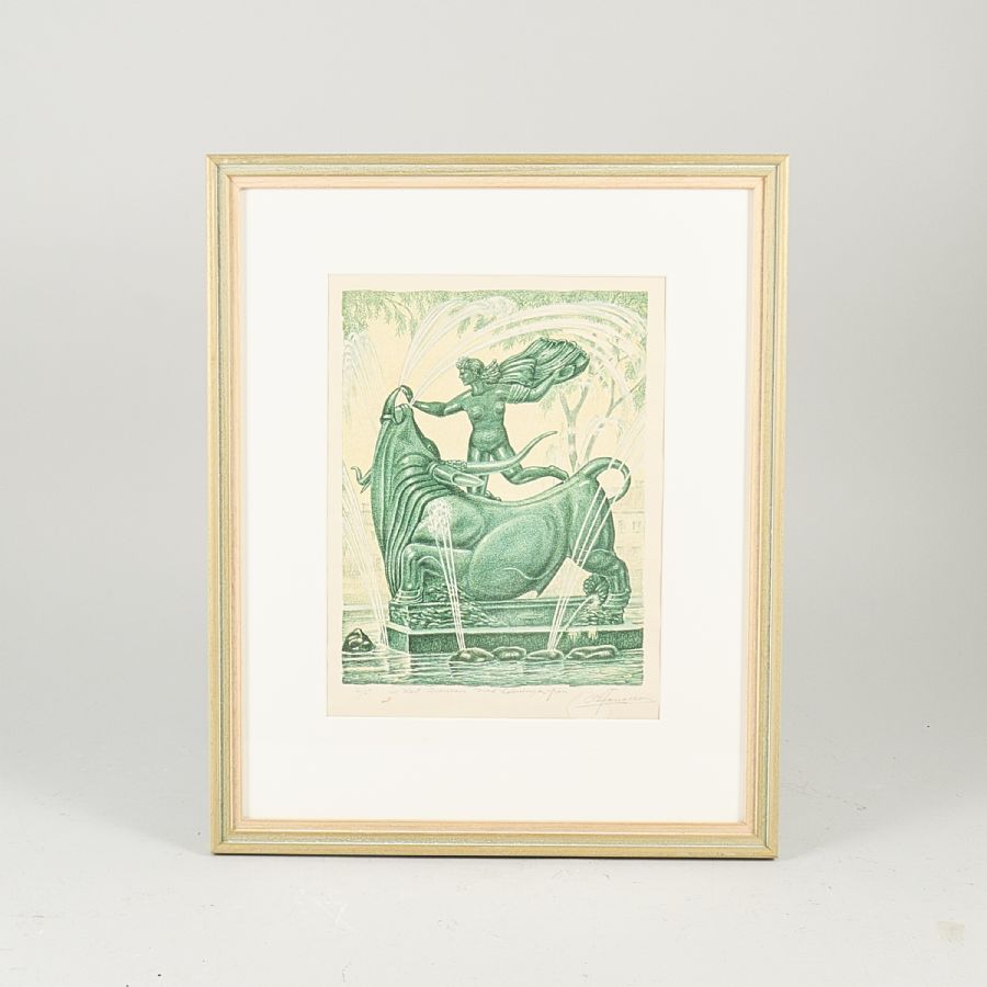 Signerad, numrerad 5/36, Europa och tjuren. Färglitografi, bildmått: 29x23 cm, yttermått inklusive ram: 52x42 cm