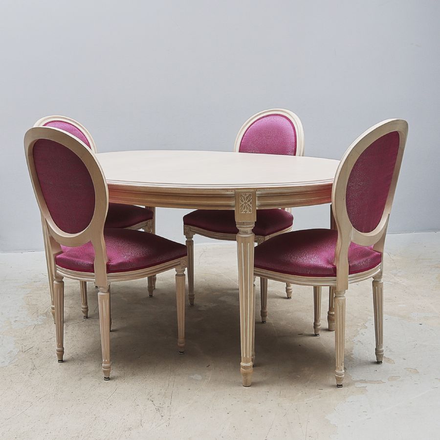 Gustavian style, 5 parts, Boed + 4 chairs. Diamet..//
