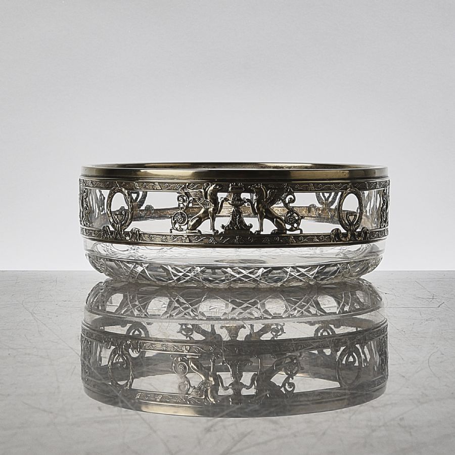 med nysilver-montering, Württembergische Metallwarenfabrik WMF. Diameter: 17 cm. Höjd: 6,5 cm