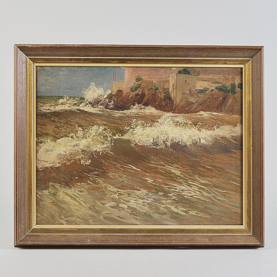 Oljemålning, Kust. Stämpelsignerad, "Nachlass" / kvarlåtenskap. Olja på pannå, 39x51 cm, yttermått inklusive ram: 50x63 cm