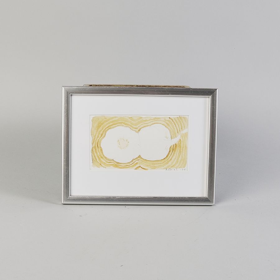 Signerad, daterad -04, Vitlök. Akvarell, bildmått: 9x16 cm, yttermått inklusive ram: 19x25 cm