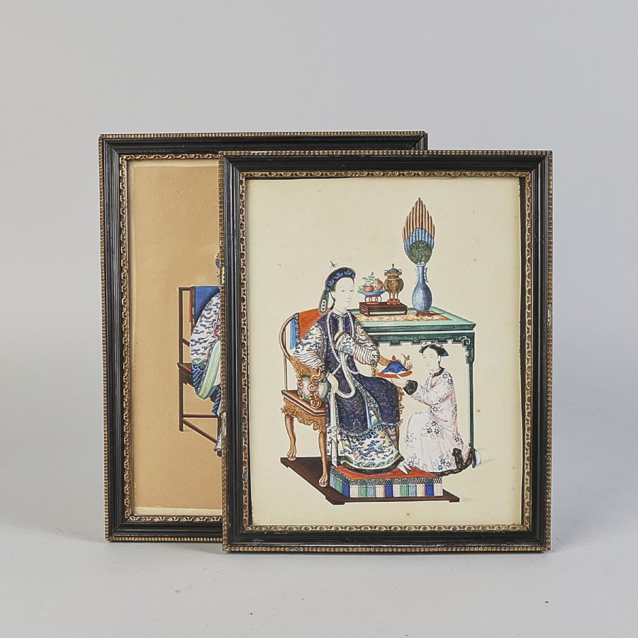 2 st, Kina, papper, interiörer, omkring 1900 cm, yttermått inklusive ram: 30x24 - 31x25 cm. Ej signerad