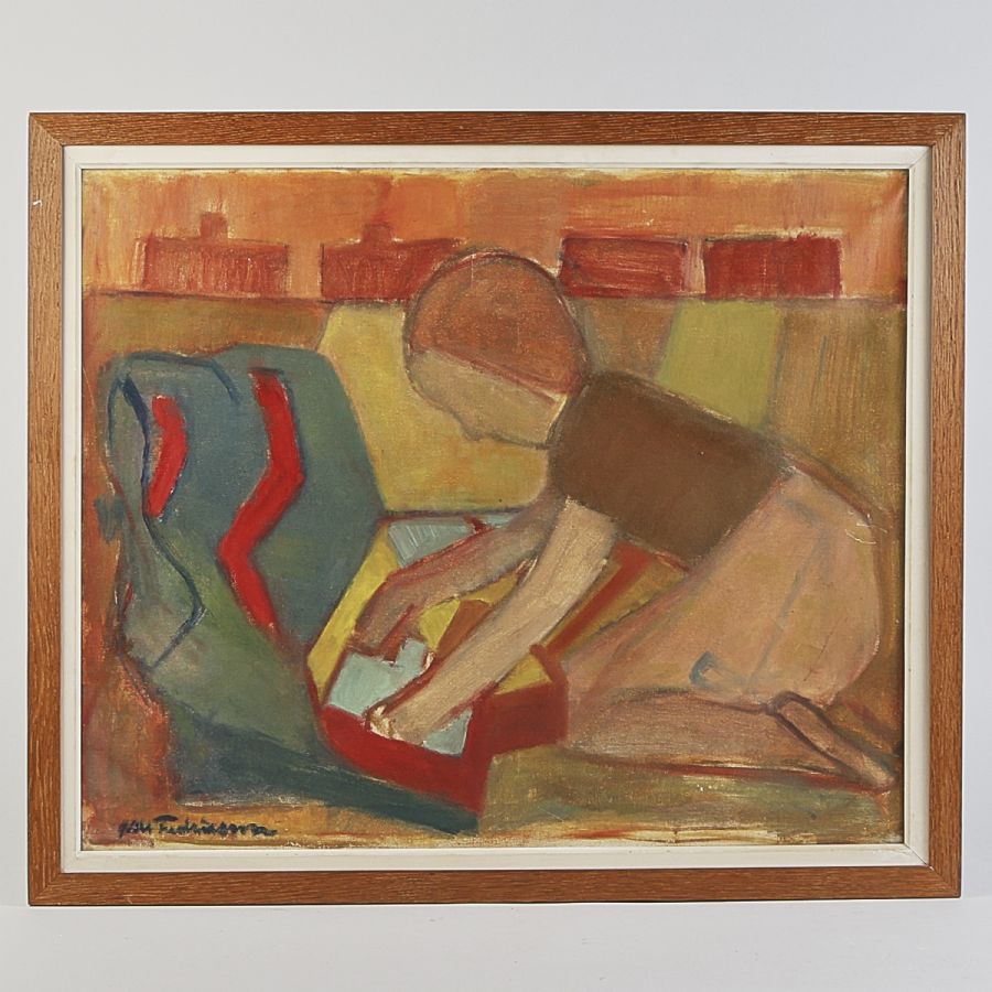 Nils Fredriksson, "Marianne leker". Signerad. Olja på duk, 59x72 cm, yttermått inklusive ram: 68x81 cm
