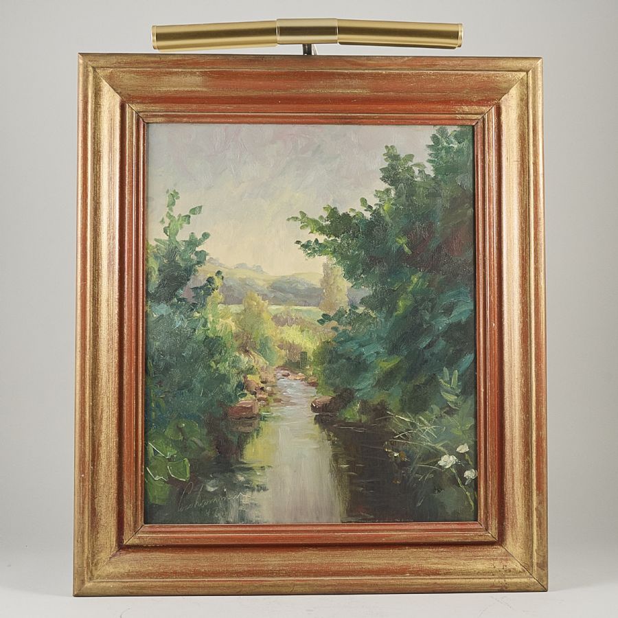 OIL PAINTING, Landskap med vattendrag. Signerad. Olja på pannå, 53x44 cm, yttermått inklusive ram: 73x61