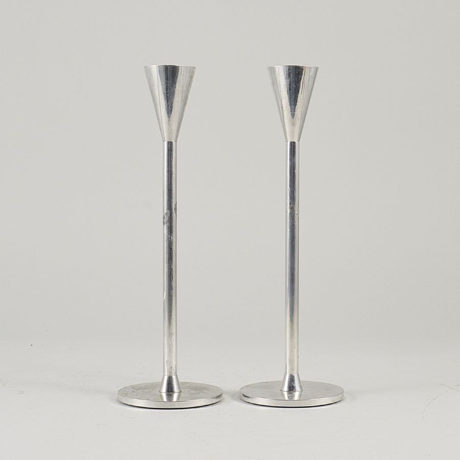 CANDLESTICKS, Ett par, "Lucia", aluminium. Höjd: 25 cm