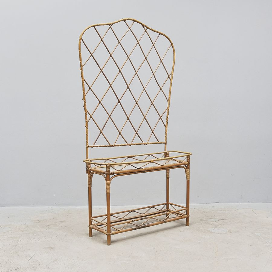 med spaljé, rotting/glasskiva. Bredd: 87 cm, djup: 28 cm, höjd: 159 cm
