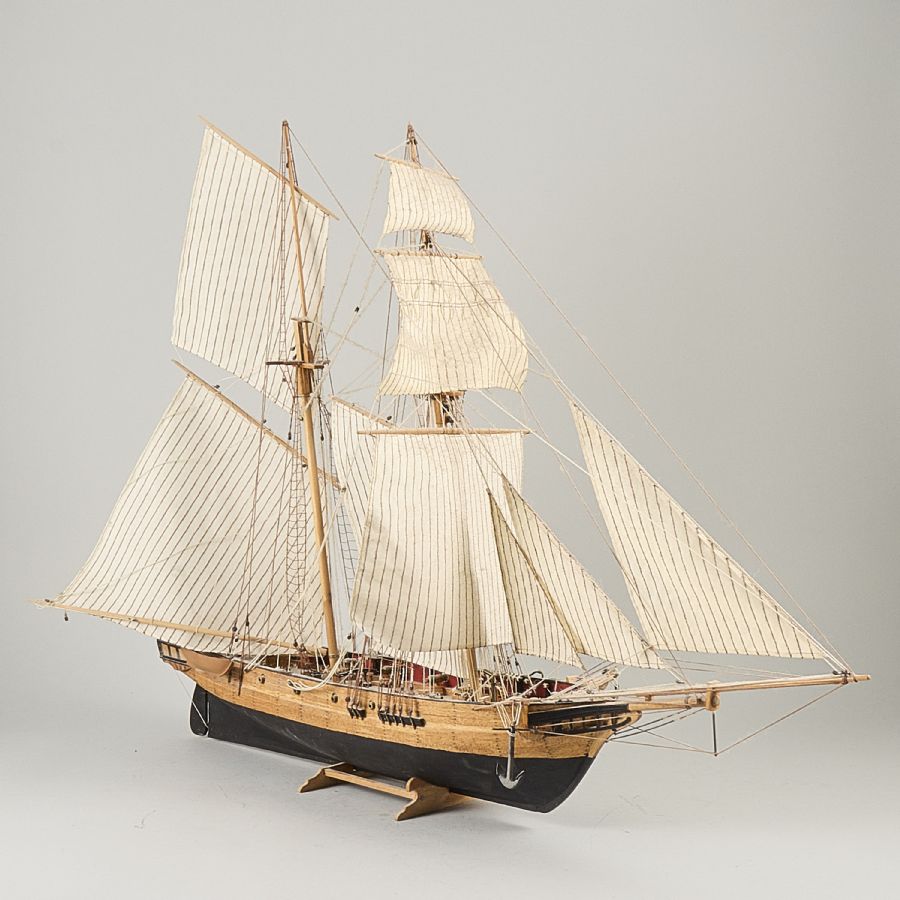 Segelfartyg. Längd: 91 cm, höjd: 69 cm