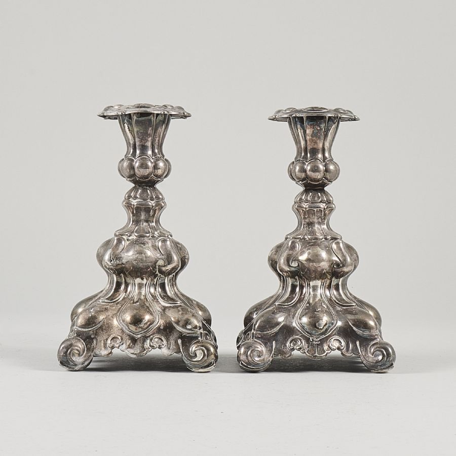 Ett par, Silver (830), nyrokokostil, fylld fot. Höjd: 18,5 cm. Vikt: 1150g brutto